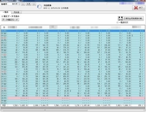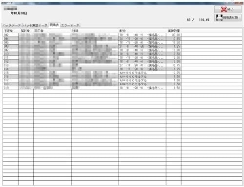 売上処理されたデータと操作盤からの実練り数量を比較し、誤差を明確に把握することが出来ます出荷監視装置単独でもデータ収集が可能。組合で各工場の出荷状況の把握、組合から各工場の伝票発行枚数の管理、工場の1車あたりのセメント量チェックなども可能です。