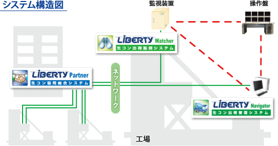 生コン協同組合にとって必要不可欠ともいえる出荷監査業務。強固なセキュリティーによる不正アクセス対策と的確な情報判定を実現したのが「Liberty Watcher」です。